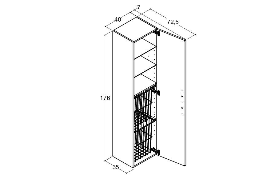 Korkea kaappi, jossa 2 lankakoria