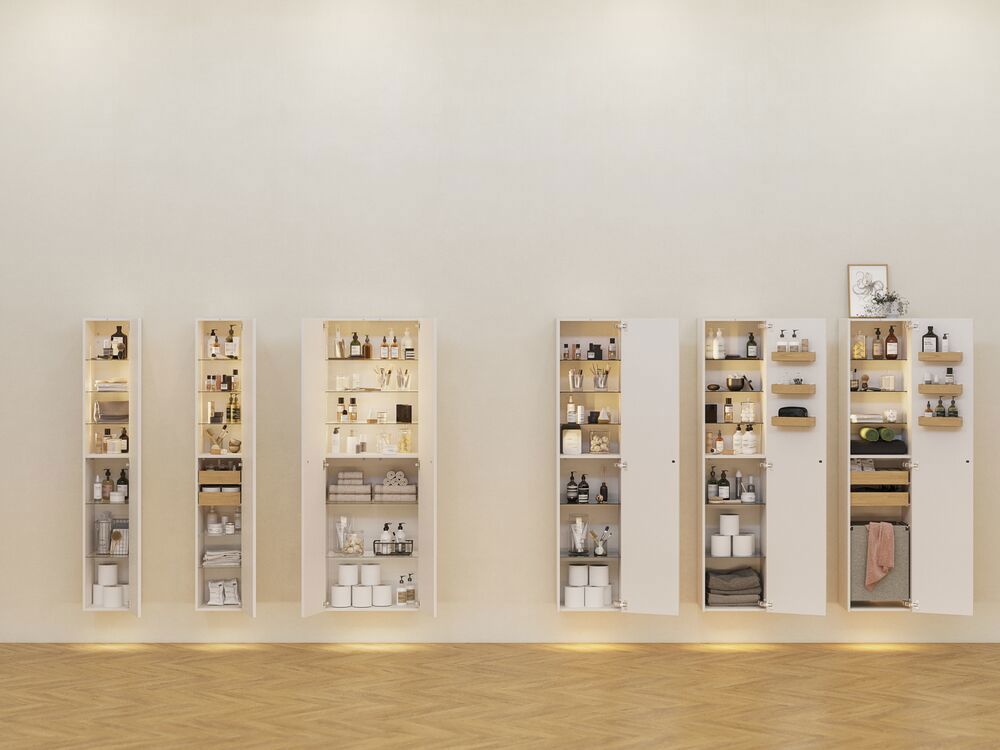 Luo kylpyhuoneeseen järjestystä ja tyyliä 60 cm leveällä korkealla kaapilla, jossa on sileä etuosa, versio A. Tässä tyylikkäässä kaksiovisessa korkeassa kaapissa on puuhylly ja viisi tilavaa lasihyllyä, jotka tarjoavat runsaasti säilytystilaa pyyhkeille, hygieniatuotteille ja muille tarvikkeille. Sileä etuosa luo minimalistisen ja ajattoman muotoilun, joka sopii kaikkiin kylpyhuoneen sisustuksiin. Tämä korkea kaappi tarjoaa sekä tilaa että eleganssia ja on täydellinen valinta järjestetyn kylpyhuoneen luomiseen. Huomautus: Valinnaisen värin sisältävistä tuotteista peritään käynnistysmaksu (BI1). Se maksetaan kerran valinnaisväriä kohden tuotteiden lukumäärästä riippumatta. Muista lisätä kylpyhuonekalusteisiisi pieniä käytännöllisiä asioita, joista nautit päivittäin. Esimerkiksi valot laatikoihin ja kaappeihin, sisäänrakennetut pistorasiat ja kalusteiden alla olevat himmennettävät tunnistinvalot, jotka ohjaavat yöllisiä kylpyhuonekäyntejä. Vaihtoehdot tilataan samaan aikaan kalusteiden kanssa.