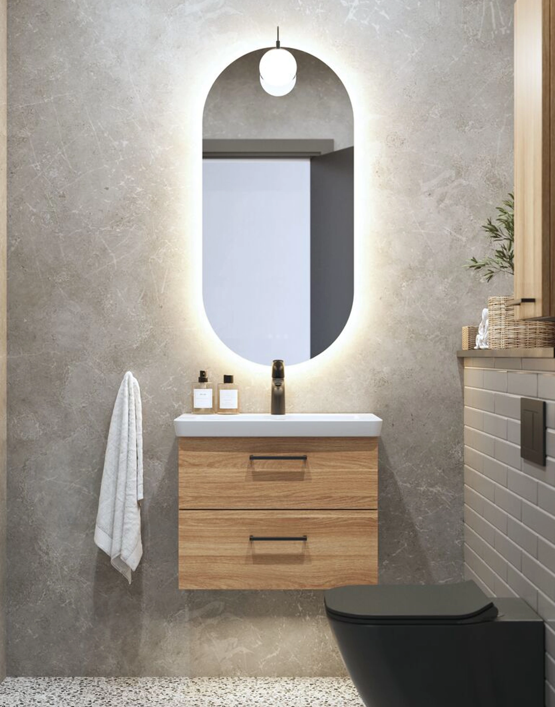 LED-valot kahdessa vetolaatikossa + pistorasia alemmassa laatikossa (60 cm)