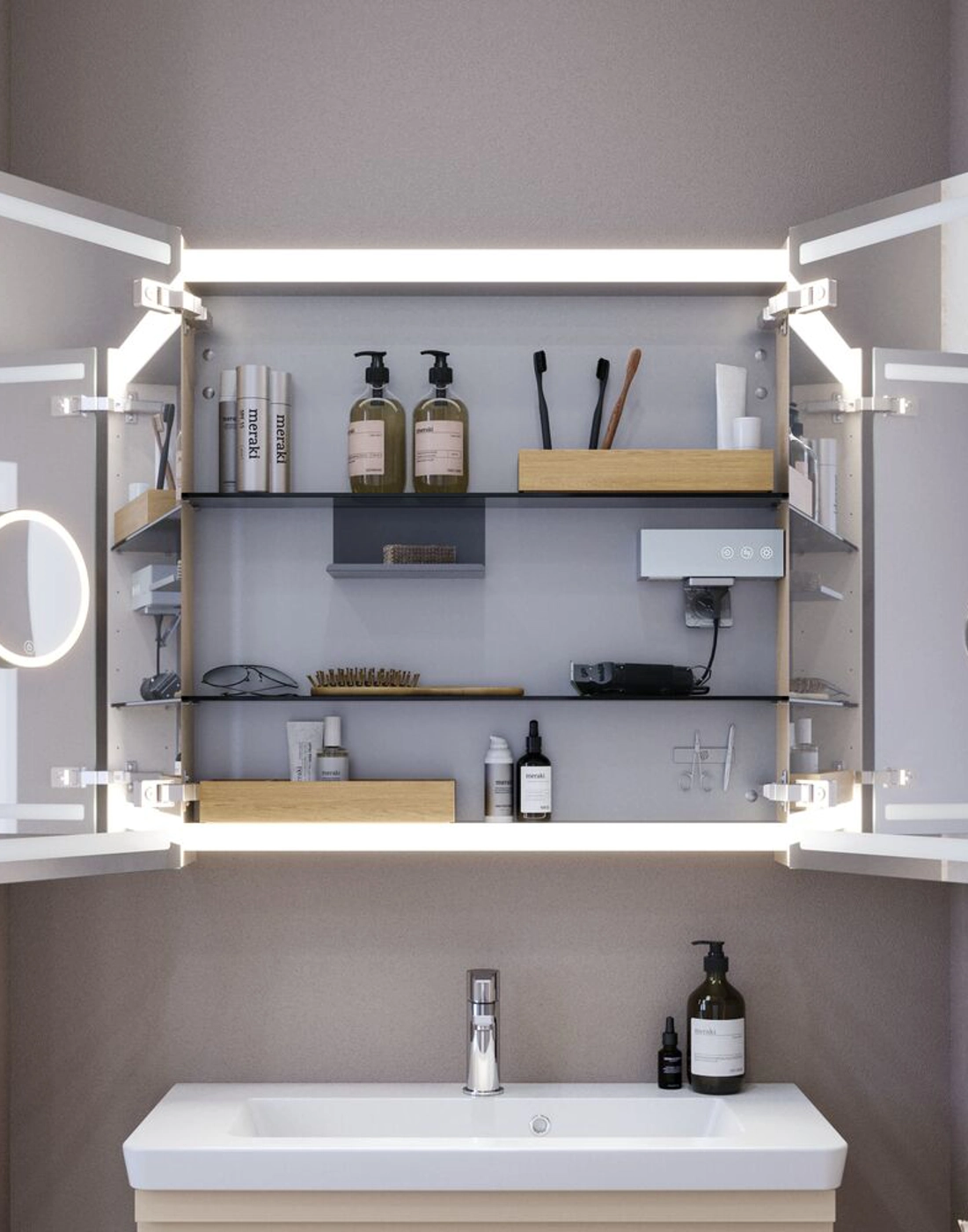 Lunan Dansani Level -peilikaappi tarjoaa runsaasti lisätilaa kylpyhuoneeseesi. Peilikaapin sisältä löydät useita hyllyjä, suurentavan peilin, magneettikiskon, metallihyllyn ja pistorasian, joten saat runsaasti tilaa hammasharjalle, parranajokoneelle, voiteille, deodorantille ja paljon muuta. Peilikaapissa on ylä- ja alapuolen valot, joiden voimakkuutta ja lämpöä voi säätää, joten saat tarpeisiisi sopivan valon. Huomautus: Valinnaisen värin sisältävistä tuotteista peritään käynnistysmaksu (BI1). Se maksetaan kerran valinnaisväriä kohden tuotteiden lukumäärästä riippumatta.
