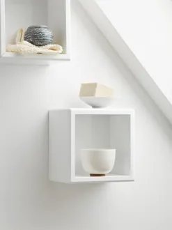 Dansani Calidris -lokerohylly on täydellinen minimalistinen lisä kylpyhuoneeseesi. Pieni neliönmuotoinen laatikko, jonka mitat ovat vain 20x20 cm, voidaan ripustaa helposti seinälle ja se luo tyylikkään säilytysratkaisun hajuvesille, pienille koriste-esineille tai muille henkilökohtaisille tavaroille. Kuution yksinkertaisen muotoilun ja käytännöllisyyden ansiosta sen avulla on helppo järjestää ja esitellä suosikkiesineitäsi kylpyhuoneessa. Huomautus: Tammella ja valinnaisella värillä varustetuista tuotteista peritään käynnistysmaksu (BI1). Maksetaan kerran tammea ja valinnaista väriä kohti tuotteiden lukumäärästä riippumatta.