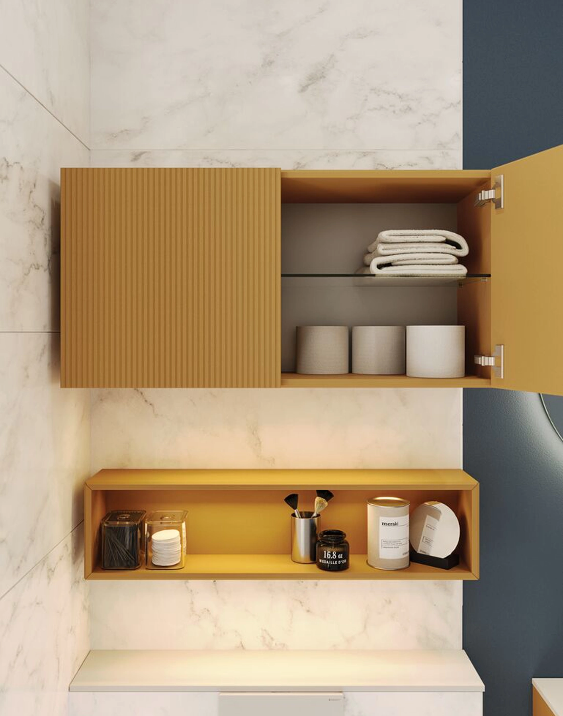 Luo tasapaino toiminnallisuuden ja estetiikan välillä Dansani Calidris -sarjan 20 cm korkeilla avoseinäelementeillä. Nämä tyylikkäät kalusteet on räätälöity kylpyhuoneeseen, jossa ne tarjoavat paitsi käytännöllistä säilytystilaa, myös tyylikkään tilan henkilökohtaisten esineidesi esillepanolle. Kompakti 20 cm:n koko tekee näistä seinäelementeistä ihanteellisia maksimoimaan kylpyhuoneesi tilan suunnittelusta tinkimättä. Käytä niitä pyyhkeiden säilömiseen, hygieniatuotteiden järjestämiseen tai koriste-elementtien esittelyyn ja persoonallisuuden luomiseen.  Voit korostaa esillä olevien esineidesi kauneutta lisäämällä näihin seinäelementteihin sisävalaistuksen. Tämä lisää hienovaraista valaistusta, joka korostaa suosikkielementtejäsi ja luo lämpimän ja kutsuvan tunnelman kylpyhuoneeseesi. Huomautus: Tammella ja valinnaisella värillä varustetuista tuotteista peritään käynnistysmaksu (BI1). Maksetaan kerran tammea ja valinnaista väriä kohti tuotteiden lukumäärästä riippumatta.