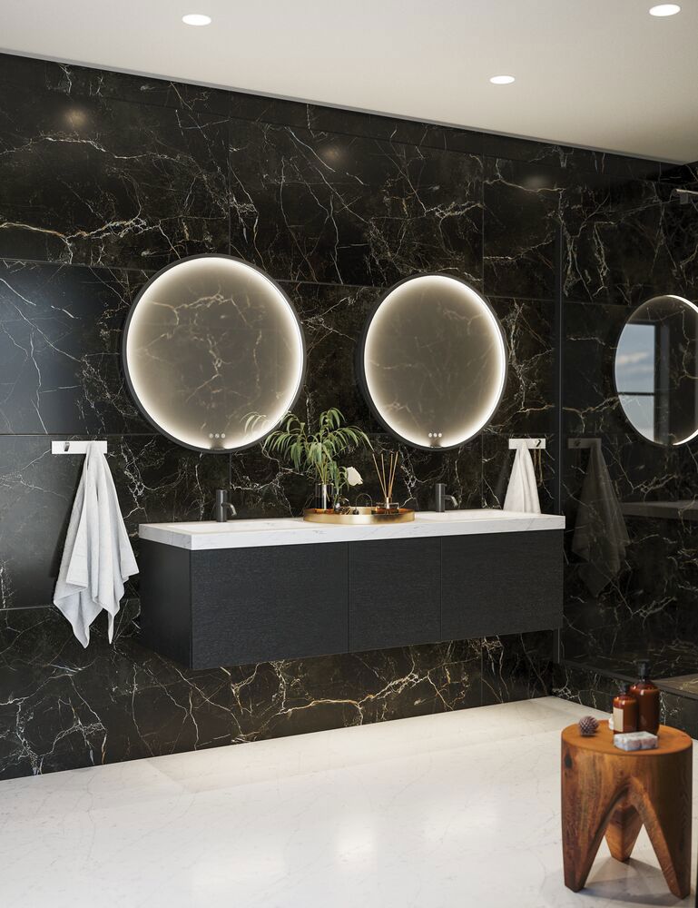 Moon-peili on kaunis ja tyylikäs pyöreä peili, jonka kehys tekee siitä koristeellisen elementin mihin tahansa sisustukseen. Peilin tukeva kehys on valmistettu kestävistä materiaaleista ja antaa peilille modernin ja tyylikkään ilmeen. Voit myös säädellä valon voimakkuutta ja lämpöä, sillä Moon-peili on luonnollisesti saatavana valaistuksenohjauksella. Peiliä ympäröivä kehys on saatavana useissa eri väreissä, kuten mustana, valkoisena ja messinkisenä, joten sen voi räätälöidä omaan tyyliin ja sisustukseen sopivaksi. Peili sopii täydellisesti kylpyhuoneeseen tai makuuhuoneeseen, ja sen avulla voit luoda huoneen, jossa on eleganssia ja ajatonta kauneutta. Voit ostaa peiliin valmiiksi asennetun lämmittimen, joka estää peilin huurtumisen suihkun aikana.