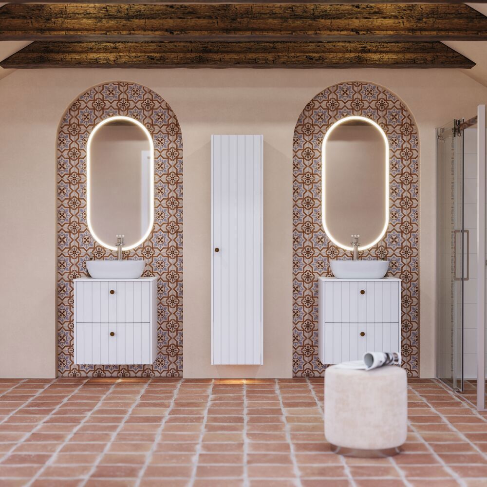 Natura-veden on elegantti puukahva, joka on valmistettu lakatusta tammesta tai pähkinäpuusta, ja se on suunniteltu tuomaan lämpöä ja luonteenpiirteitä kylpyhuoneeseen. Sen luonnollinen puupinta toimii kauniina kontrastina sekä valkoisille että enemmän erikoisvärisille huonekaluille, korostaen ja täydentäen värivalintaa. Kahva tuo kutsuvan, orgaanisen kosketuksen, joka luo harmoniaa huonekalujen ja kylpyhuoneen muiden elementtien välille riippumatta tyylistä ja sisustuksesta.