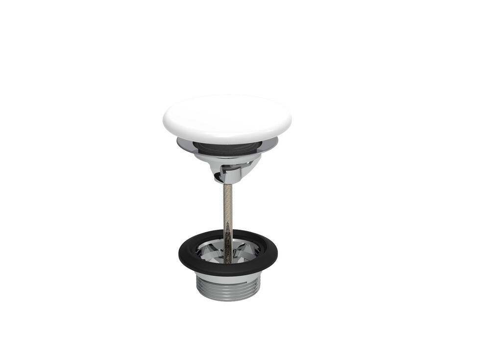 Pohjaventtiilit mekaaninen push-open-pohjaventtiili ja posliininen yläosa.