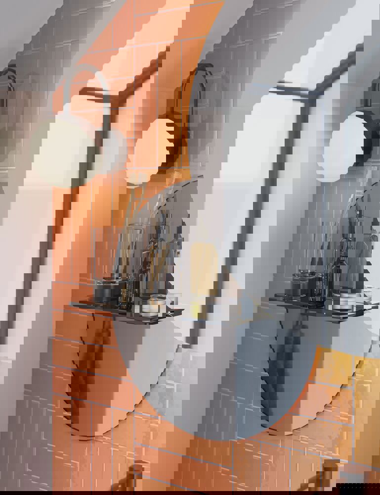 Present peili lasihyllyllä