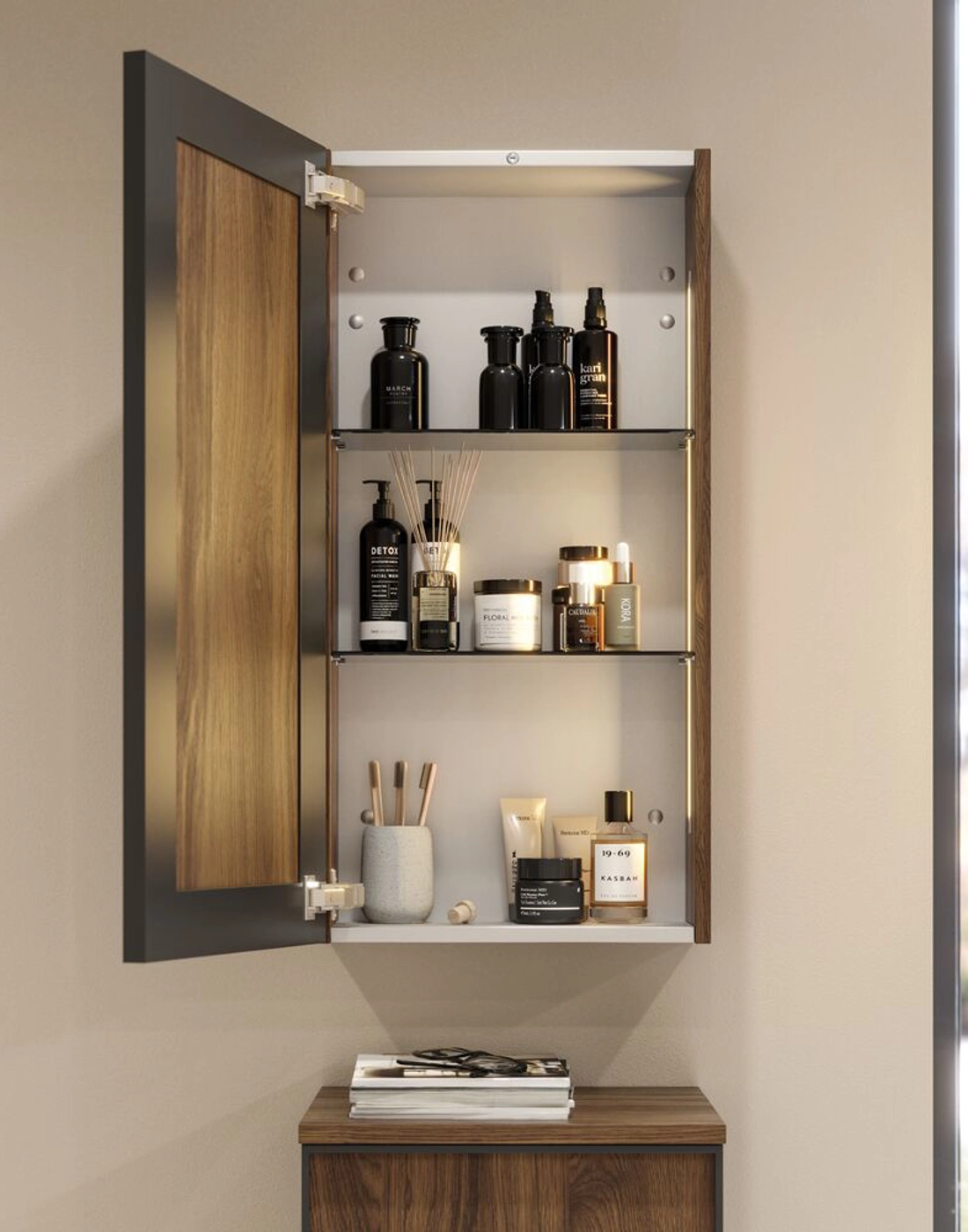 Musta kehys puolikaapissa Versio B tarjoaa toimivan ja tyylikkään ratkaisun kylpyhuoneeseesi. Leveys on 40 cm ja syvyys 35 cm, ja tämä puolikaappi on varustettu ulosvedettävällä laatikolla ja pyykkipussilla, mikä tekee siitä ihanteellisen sekä kosmetiikan että pyykin säilyttämiseen. Musta kehys lisää modernia ilmettä kylpyhuoneeseesi, kun taas käytännöllinen muotoilu varmistaa, että kaikki pysyy järjestyksessä ja helposti saatavilla. Tämän puolikaapin avulla voit optimoida säilytystilasi ja luoda siistin ympäristön, jossa löydät helposti kaiken tarvitsemasi. Huomautus: Valinnaisen värin sisältävistä tuotteista peritään käynnistysmaksu (BI1). Se maksetaan kerran valinnaisväriä kohden tuotteiden lukumäärästä riippumatta. Muista lisätä kylpyhuonekalusteisiisi pieniä käytännöllisiä asioita, joista nautit päivittäin. Esimerkiksi valot laatikoihin ja kaappeihin, sisäänrakennetut pistorasiat ja kalusteiden alla olevat himmennettävät tunnistinvalot, jotka ohjaavat yöllisiä kylpyhuonekäyntejä. Vaihtoehdot tilataan samaan aikaan kalusteiden kanssa.