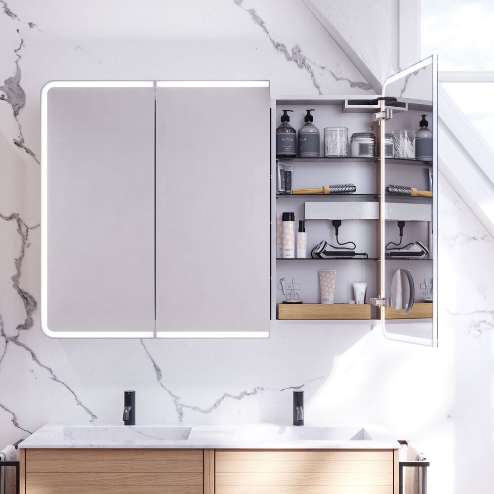 Radience-peilikaapissa yhdistyvät moderni muotoilu ja käytännöllinen säilytystila. Tyylikkäiden peiliovien takaa löydät runsaasti tilaa päivittäisille hygieniatuotteillesi, joten voit pitää kylpyhuoneesi helposti järjestyksessä. Reunassa oleva valokehys kehystää kauniisti heijastustasi ja luo viihtyisän valon, jota voit ohjata langattomasti suoraan ovesta. Peilin huurtumisenestotoiminnon sekä eri koko- ja värivaihtoehtojen ansiosta Radience on sekä käytännöllinen että tyylikäs ratkaisu - täydellinen nykypäivän trendiin, jossa kylpyhuoneen on oltava sekä toimiva että persoonallinen. Huomautus: Valinnaisen värin sisältävistä tuotteista peritään käynnistysmaksu (BI1). Se maksetaan kerran valinnaisväriä kohden tuotteiden lukumäärästä riippumatta.