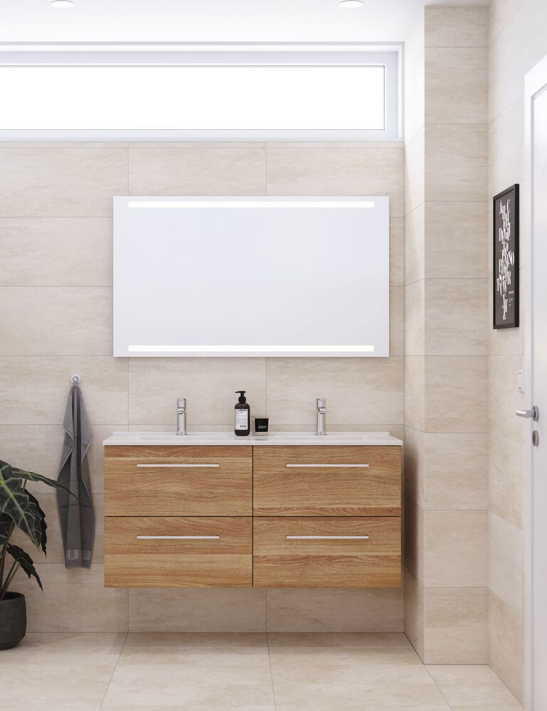 Repeat -peili on tyylikäs ja käytännöllinen valinta kylpyhuoneeseesi. Peilin ylä- ja alapuolella on sisäänrakennettu valo, joka luo optimaalisen valaistuksen huoneeseen. Repeat-peili on saatavana tunnistimella tai ilman tunnistinta. Jos valitset tunnistinmallin, voit helposti kytkeä valon päälle ja pois päältä koskematta peiliin. Peili on uskomattoman laadukas, joten se on sekä kestävä että kestävä. Voit ostaa peilin lämmittimen, jotta peili ei huurru suihkussa. Lämmitin on asennettava itse.