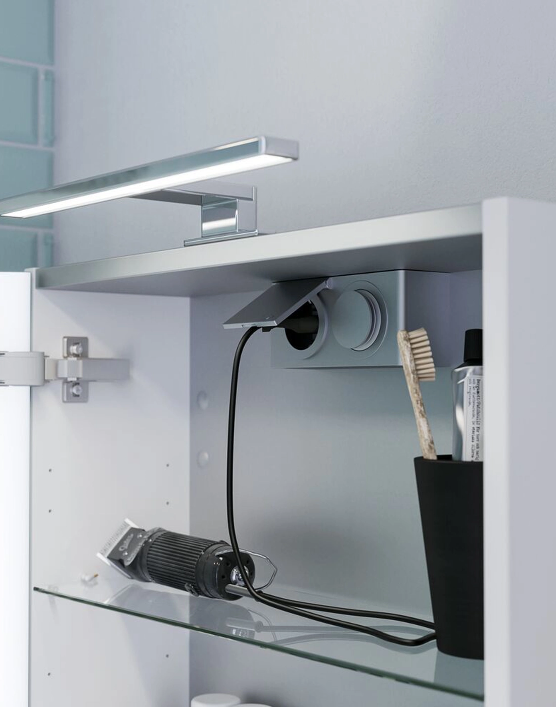 Select -peilikaappi on paljon muutakin kuin pelkkä peilikaappi - se on henkilökohtainen kylpyhuoneen päivitys. Valitse omat valaisimesi ja luo täydellinen valaistus aloittaa päiväsi tyylillä. Peilikaapin kanssa saat runsaasti säilytystilaa ja peilikaapin sisällä olevan pistorasian sähkölaitteillesi. Koe mukavuus ja tyylikkyys yhdessä Select -peilikaapin kanssa - päivittäinen kumppanisi loistavaan aamuun.