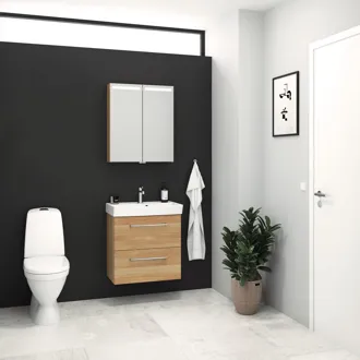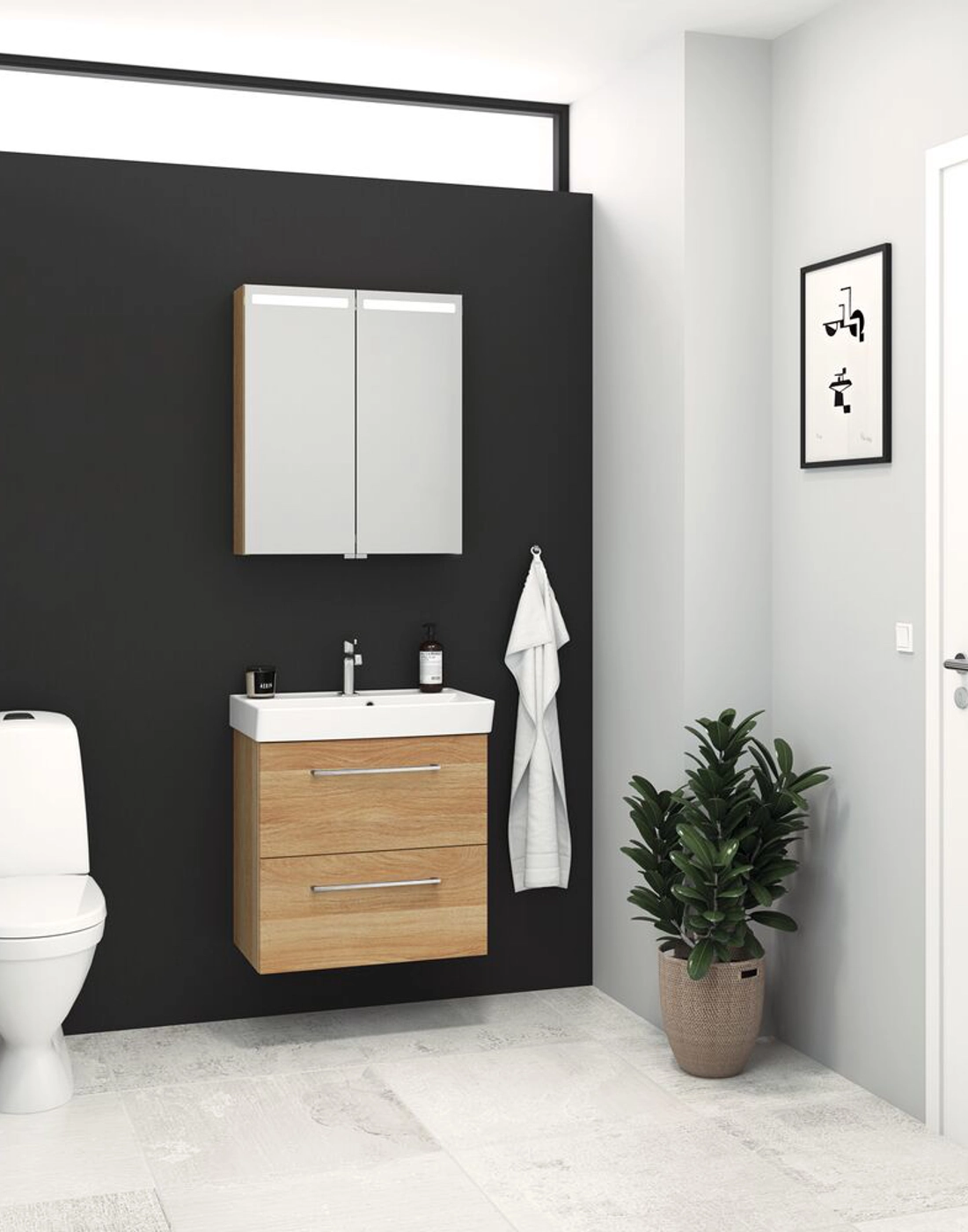 Nosta aamusi uuteen nousuun Dansani Mido+ Top-peilikaapilla. Tässä peilikaapissa on yläosassa valonauha, ja peilikaapin sisältä löydät runsaasti säilytystilaa sekä pistorasian, jossa on kytkin. Saat siis paljon enemmän kuin ehkä odotat. Peilikaappi on tietenkin saatavana Mido+ -värisillä päätylevyillä, joten voit sovittaa peilikaapin kylpyhuoneen kalusteisiin ja muuhun kylpyhuoneeseen.