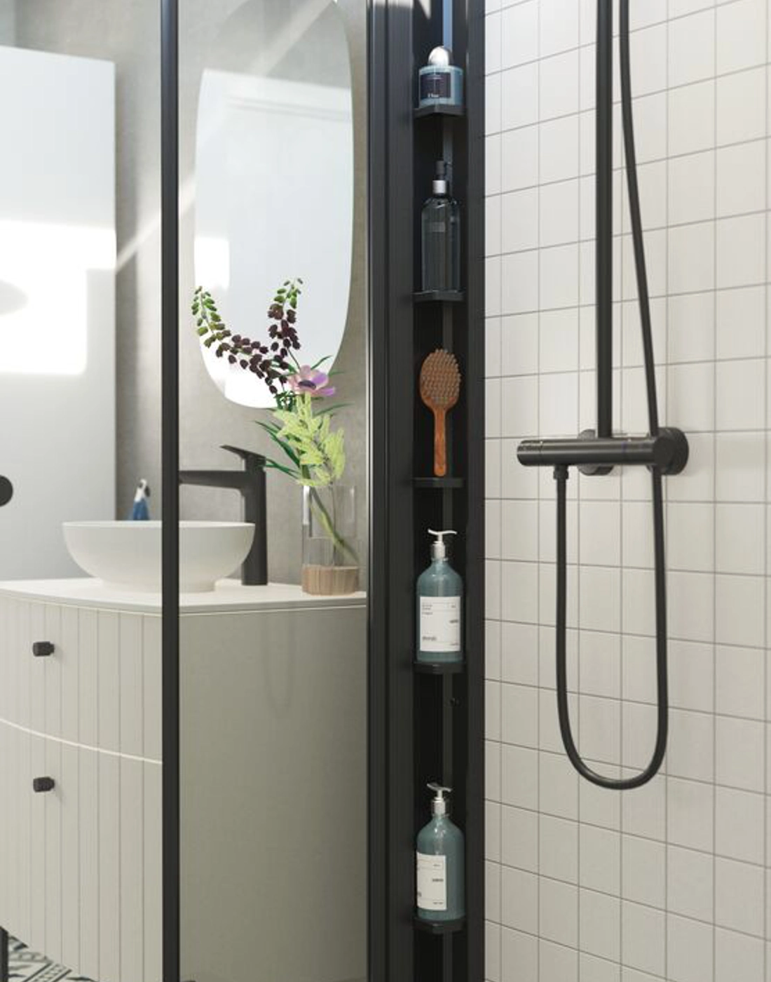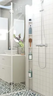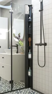 Dansani Tower on innovatiivinen ratkaisu, joka tarjoaa poikkeuksellista säilytystilaa suihkussa esteettisyydestä tinkimättä. Tämä älykäs säilytysjärjestelmä yhdistyy saumattomasti Dansanin Match-ovien ja -seinien kanssa luoden yhtenäisen ja tyylikkään suihkuratkaisun. Towerissa on 5 irrotettavaa hyllyä, jotka sopivat erinomaisesti suihkussa käytettävien tuotteiden ja hoitotarvikkeiden järjestämiseen. Jos haluat asentaa Towerin, valitse vain 10 cm kapeampi seinä tai ovi. Dansani Tower on ihanteellinen ratkaisu niille, jotka haluavat optimoida suihkunsa tilan tinkimättä tyylistä ja toiminnallisuudesta. Towerin avulla saat sekä käytännöllistä säilytystilaa että tyylikkään suihkukokemuksen, joka antaa sinulle hyvinvoinnin ja järjestyksen tunteen suihkutilassasi.