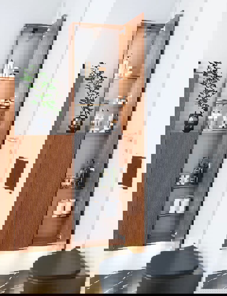 Organisoitu kylpyhuone alkaa usein organisoidusta säilytyksestä, minkä vuoksi kaappien sisävalaistus on niin tärkeää. Sisävalaistuksen avulla näet tarkalleen, mitä kaapin hyllyillä on. Valo on sijoitettu saranapuolta vastapäätä, jolloin saat hyvän yleiskuvan, ylellisyyden sekä hyvinvoinnin tunteen kylpyhuoneessa. Valo on sijoitettu saranapuolta vastapäätä, jolloin saat hyvän yleiskuvan ja ylellisyyden ja hyvinvoinnin tunteen kylpyhuoneessa.