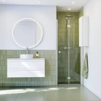 Dansani Match vastaprofiili 1 on yhdistettävissä Match -sarjan malliin A (kääntyvä ovi), malliin B (taittuva ovi) tai malliin C (kiinteä seinä kääntyvällä ovella). Vastaprofiilin avulla voit lisätä 20 mm. Yhdessä saranaprofiilin kanssa, jolla voidaan myös lisätä 20 mm, saadaan yhteensä 40 mm:n leveyssäätö. Jos tarvitset lisää leveyttä, voit lisätä levennysprofiilin.