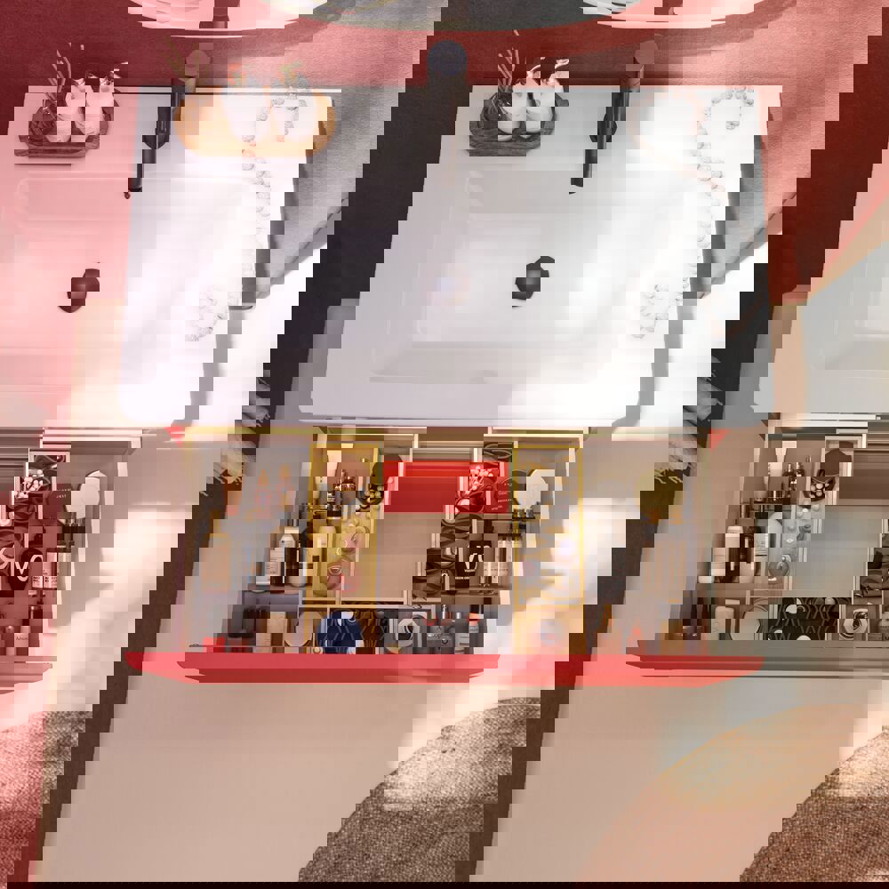 Pidä kirjaa kaikista kylpyhuonetarvikkeistasi tällä älykkäällä ja harkitulla laatikostolla, joka on suunniteltu optimoimaan säilytystilaa turhamaisuudessasi. Järjestelylaatikko koostuu hienoista puulaatikoista, jotka tuovat kylpyhuoneeseesi tyylikkään ilmeen ja pitävät samalla turhamaisuutesi tuotteet järjestyksessä. Saat myös käytännöllisen laatikoston, jossa on viistetyt hyllyt, jotka tekevät tuotteistasi näkyvämpiä ja helpommin saatavilla olevia. Mukana on myös joustava silikonijakaja, jota voidaan käyttää sekä lokeroissa että lokeroissa pitämään pienet tuotteet järjestyksessä. Riippuen allaskaapin leveydestä, sinun on ostettava 1 tai 2 pakkausta, jotta voit täyttää koko laatikon.
