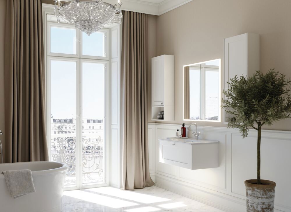 Lisää kylpyhuoneeseesi ajaton elementti yläkaapilla, jossa on klassinen kehys etuosa. Sen elegantti kehys ja kaksi lasihyllyä, jotka tarjoavat selkeän näkymän sisältöön, tekevät tästä kaapista täydellisen kylpyhuoneen tarvikkeiden järjestämiseen. Yläkaappi on 40 cm leveä ja 19 cm syvä, mikä tekee siitä ihanteellisen pienille tiloille. Yhdistä se avoimeen hyllyyn luodaksesi harmonisen ilmeen, jossa voit säilyttää ja esitellä suosikkituotteitasi ja koristeitasi. Huomautus: Valinnaisen värin sisältävistä tuotteista peritään käynnistysmaksu (BI1). Se maksetaan kerran valinnaisväriä kohden tuotteiden lukumäärästä riippumatta. Muista lisätä kylpyhuonekalusteisiisi pieniä käytännöllisiä asioita, joista nautit päivittäin. Esimerkiksi valot laatikoihin ja kaappeihin, sisäänrakennetut pistorasiat ja kalusteiden alla olevat himmennettävät tunnistinvalot, jotka ohjaavat yöllisiä kylpyhuonekäyntejä. Vaihtoehdot tilataan samaan aikaan kalusteiden kanssa.