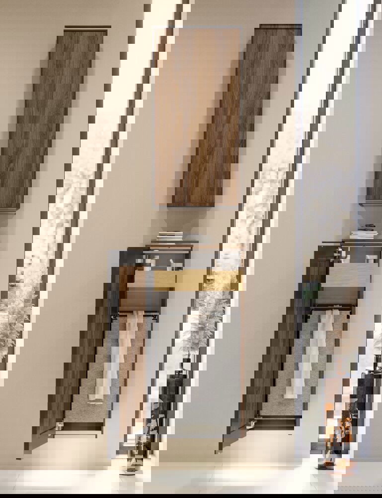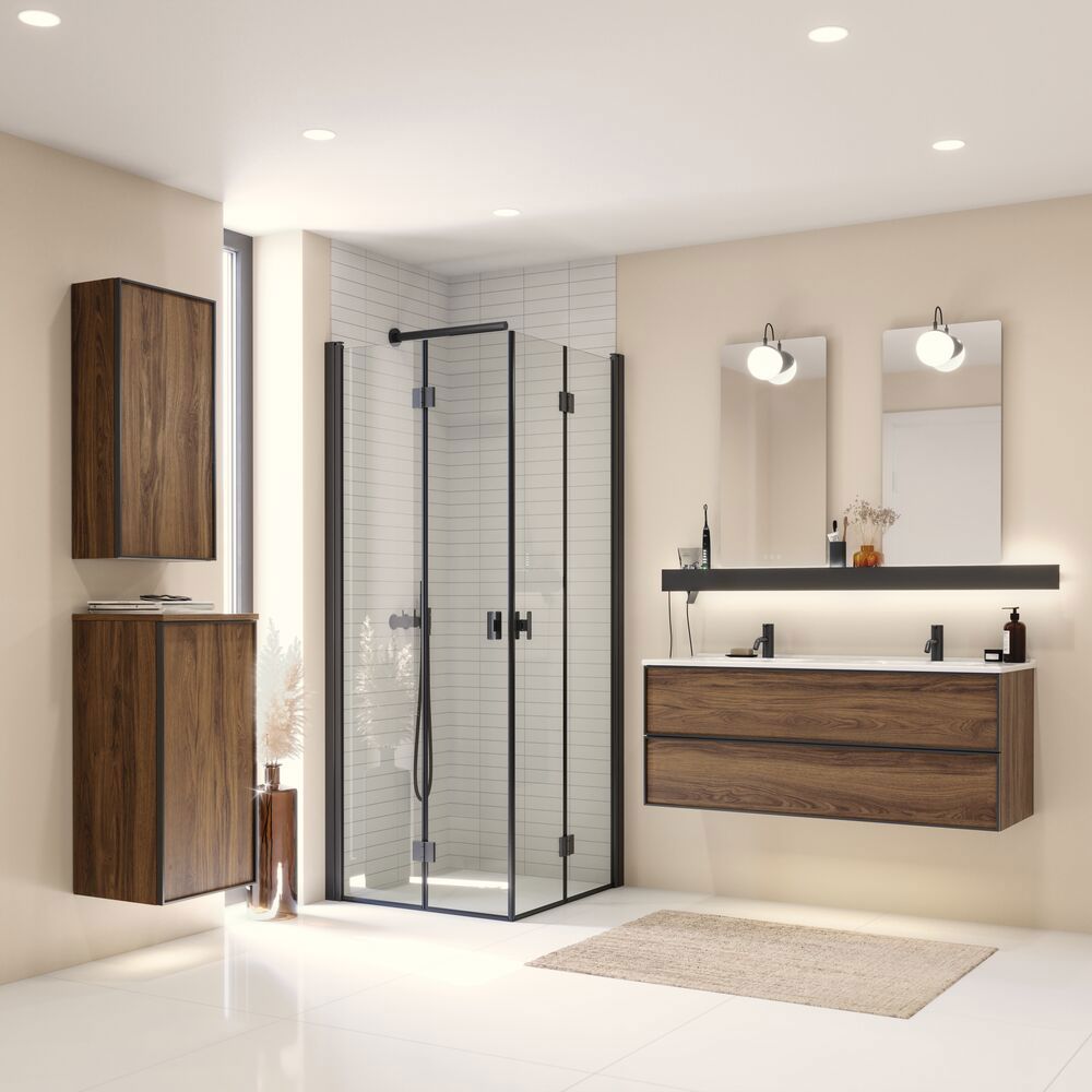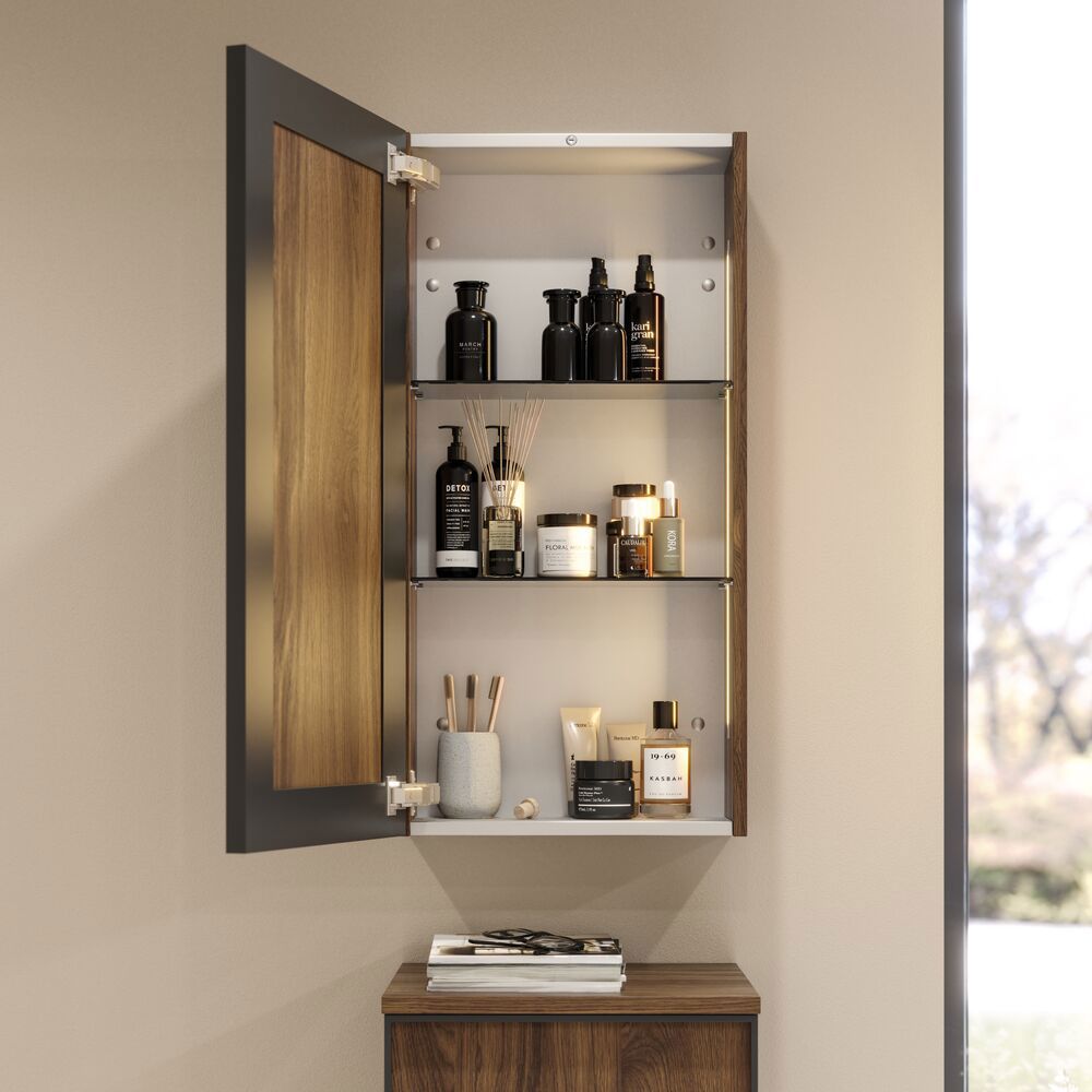 Lisää säilytystilaa Dansani-yläkaapilla, jossa on musta kehys ja kaksi lasihyllyä, tarjoten modernin ja elegantin ratkaisun kylpyhuoneeseesi. Musta kehys lisää hienostunutta ilmettä, joka sopii hyvin moderniin kylpyhuonesisustukseen. Käytä yläkaappia pitämään voiteet, deodorantit ja muut tarvikkeet järjestyksessä, jotta kylpyhuoneesi näyttää aina siistiltä ja tyylikkäältä. Erilaisilla värivaihtoehdoilla voit helposti sovittaa kaapin muun kylpyhuoneesi kanssa. Huomautus: Valinnaisen värin sisältävistä tuotteista peritään käynnistysmaksu (BI1). Se maksetaan kerran valinnaisväriä kohden tuotteiden lukumäärästä riippumatta. Muista lisätä kylpyhuonekalusteisiisi pieniä käytännöllisiä asioita, joista nautit päivittäin. Esimerkiksi valot laatikoihin ja kaappeihin, sisäänrakennetut pistorasiat ja kalusteiden alla olevat himmennettävät tunnistinvalot, jotka ohjaavat yöllisiä kylpyhuonekäyntejä. Vaihtoehdot tilataan samaan aikaan kalusteiden kanssa.
