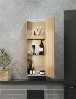 Vapauta tilaa ja järjestä kylpyhuoneesi Dansani Luna -seinäkaapeilla. Tämä 2 lasihyllyllä varustettu älykäs kaappi on sekä tyylikäs että toimiva. Käytä kaappia kylpyhuoneen säilytykseen, jotta voit pitää voiteet, deodorantit jne. järjestyksessä kylpyhuoneessa. Kaappia on saatavana useissa eri väreissä, jotta se sopii kylpyhuoneesi muuhun sisustukseen. Huomautus: Valinnaisen värin sisältävistä tuotteista peritään käynnistysmaksu (BI1). Se maksetaan kerran valinnaisväriä kohden tuotteiden lukumäärästä riippumatta. Muista lisätä kylpyhuonekalusteisiisi pieniä käytännöllisiä asioita, joista nautit päivittäin. Esimerkiksi valot laatikoihin ja kaappeihin, sisäänrakennetut pistorasiat ja kalusteiden alla olevat himmennettävät tunnistinvalot, jotka ohjaavat yöllisiä kylpyhuonekäyntejä. Vaihtoehdot tilataan samaan aikaan kalusteiden kanssa.