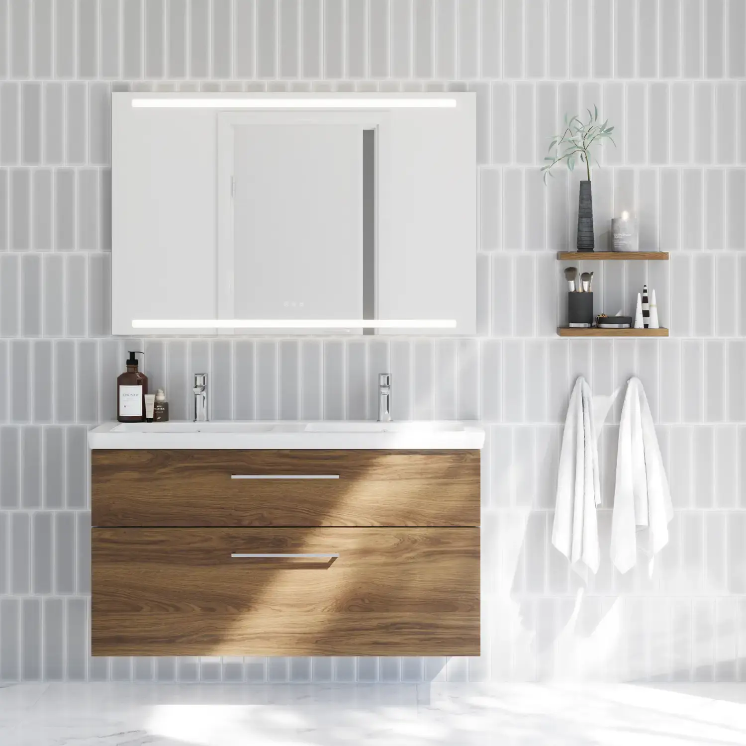 Onko sinulla kaksoisallas? Silloin 120 cm:n peili on ihanteellinen valinta. Se takaa, että molemmilla pesualtailla on optimaalinen peilitila, ja peili sitoo koko kalusteen harmonisesti yhteen. Suuri peili luo kylpyhuoneeseen myös enemmän rauhallisuutta kuin kaksi pienempää peiliä. Suuri peilipinta rauhoittaa silmää ja saa kylpyhuoneen näyttämään harmonisemmalta.