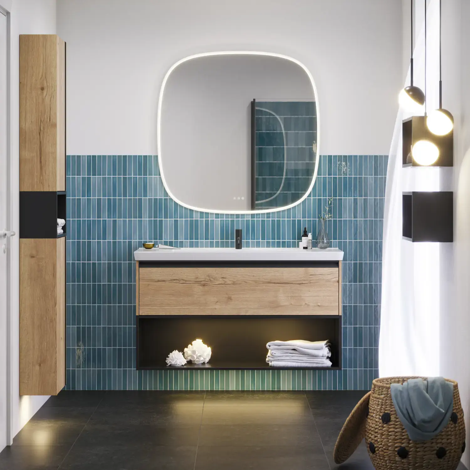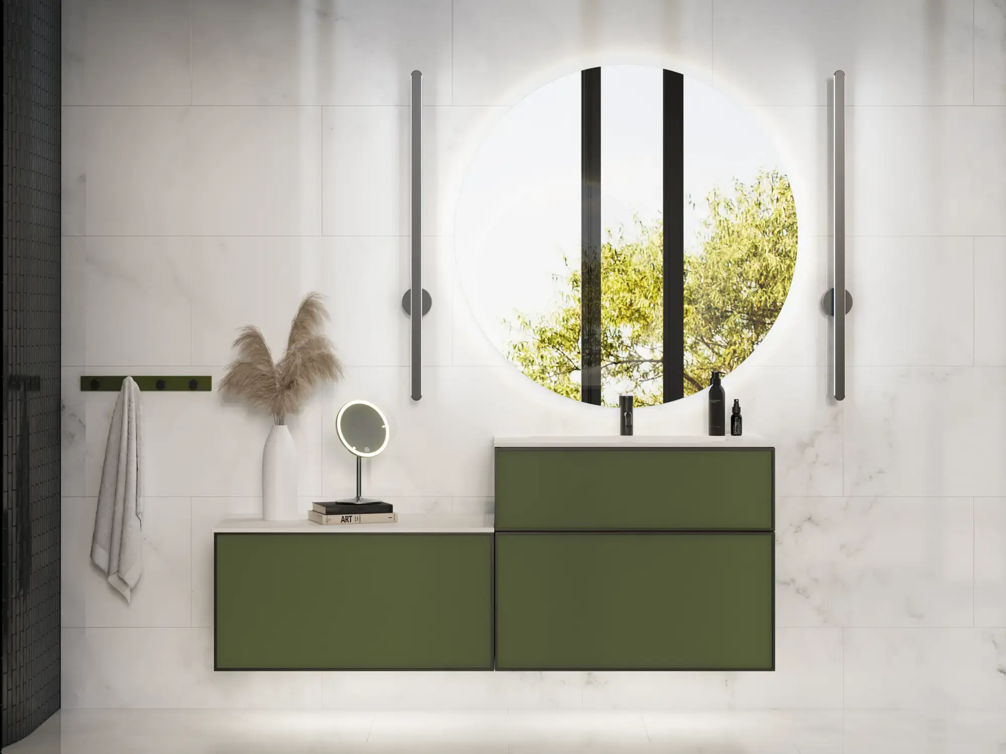 Modulaarinen lähestymistapamme antaa sinulle vapauden valita kalusteet, värit ja lisävarusteet, jotka sopivat täydellisesti makuusi ja tyyliisi. Niiden luomat puhtaat pinnat antavat tilalle vahvan ja yksinkertaisen ilmeen, jota voidaan muokata juuri unelmiesi kylpyhuoneen luomiseksi.