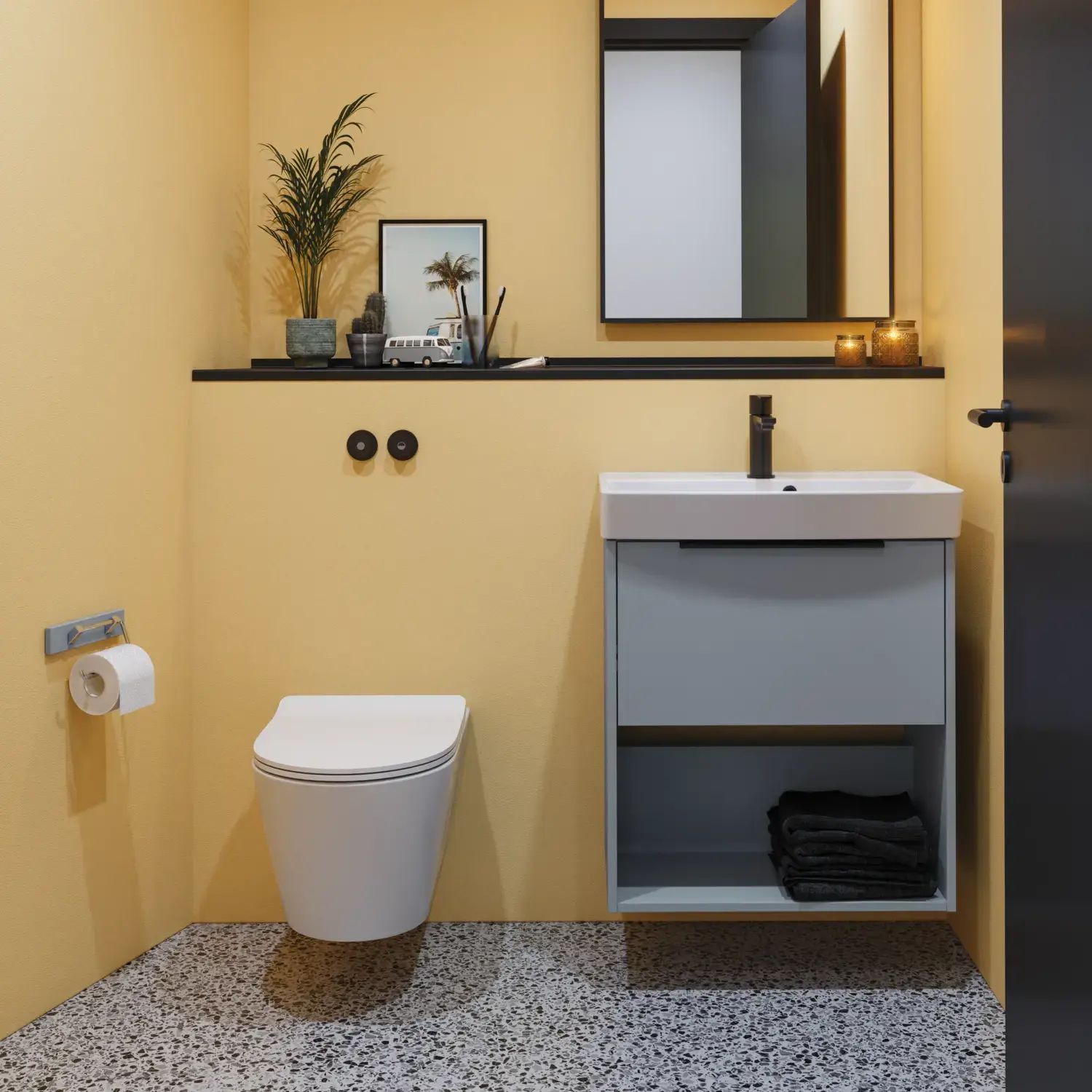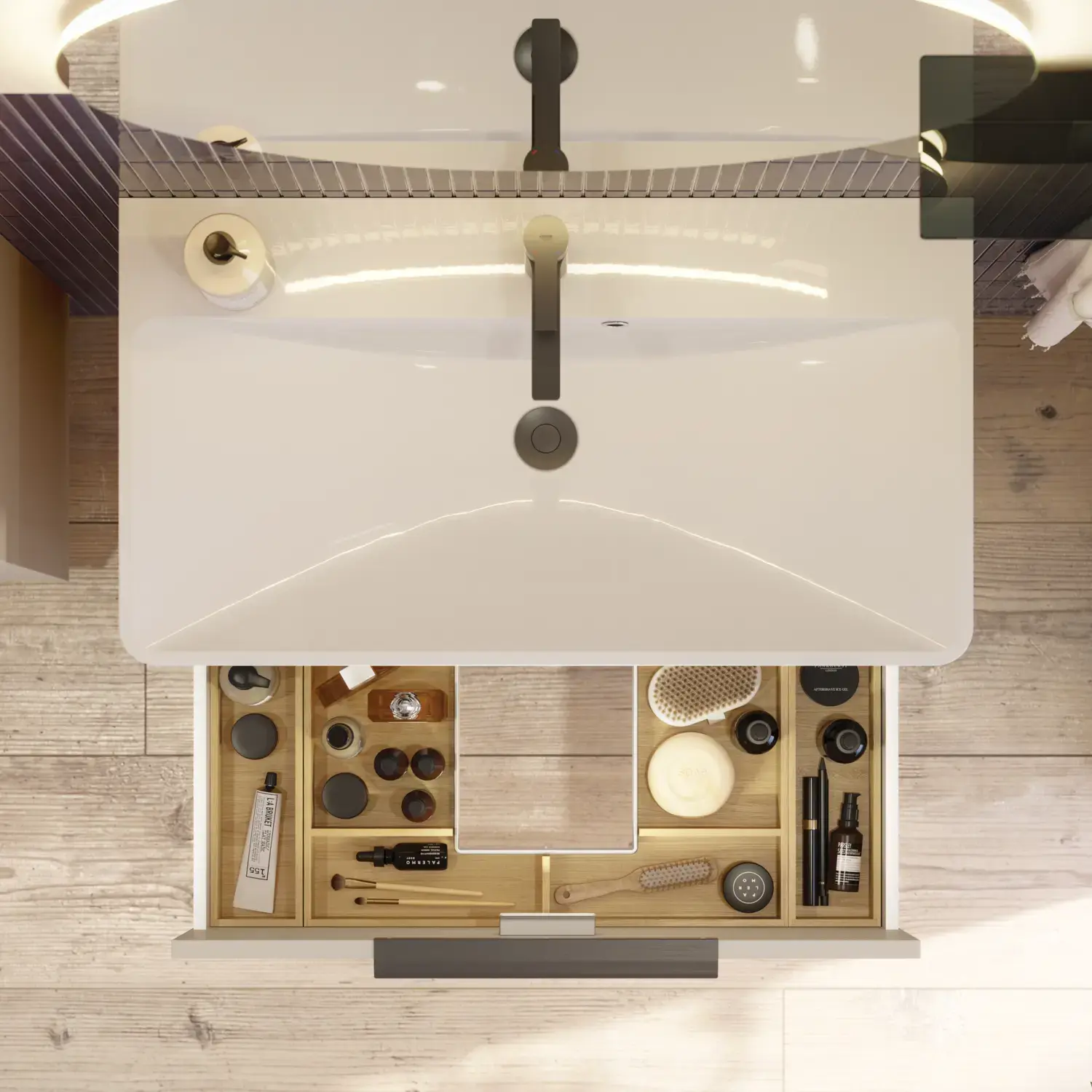 Säädä tunnelma avoimella tilalla alalaatikon sijasta. Siellä on tilaa suosikkipyyhkeillesi ja kivalle korille tai purkille, joka lisää persoonallisuutta.