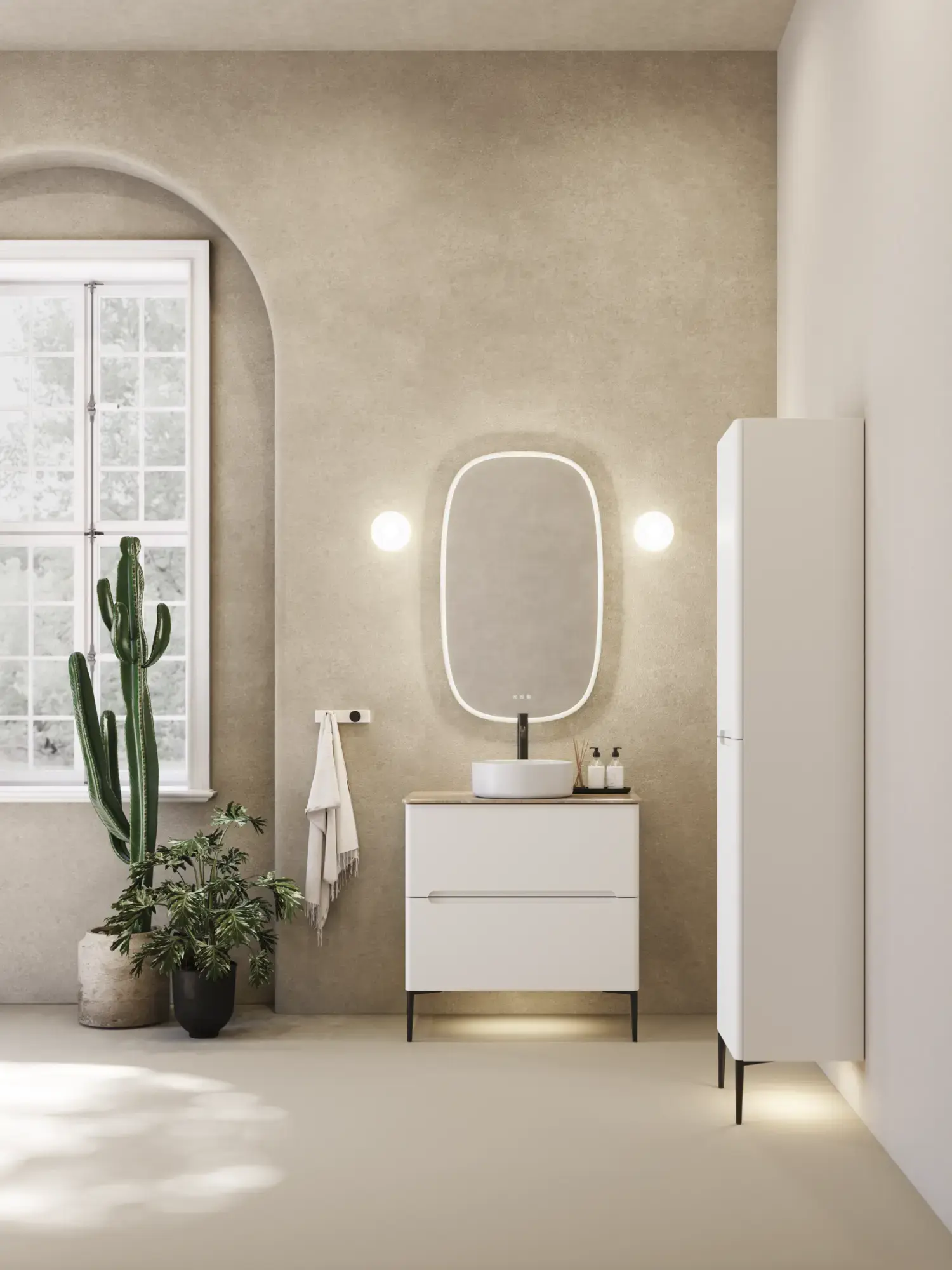 Nyt voit myös yhdistää peilien, valaisimien ja kohdevalojen valaistuksenohjauksen toisiinsa. Näin peilin valojen säätö säätää samalla myös riippuvalaisinten ja kohdevalaisinten voimakkuuden ja värisävyn. Ainutlaatuinen langaton ohjaus on helppo ottaa käyttöön eikä vaadi Wi-Fi yhteyttä. Tarvitset vain yhden vastaanottimen jokaista 5 laitetta kohden, joko peilikaappia, riippuvalaisinta tai kohdevalaisinta.