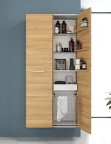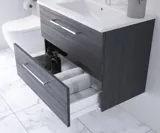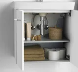 Kaappien 18 mm kalvopäällysteinen MDF-levy mattavalkoisena ja korkeakiiltoisena on R-PET-kalvoa (kierrätyspolyetyleeni), josta 40% on kierrätysmuovia, kun taas muut mallit ovat 19 mm lastulevystä ABS-reunoin ja kosteudenkestävästä PU-liimasta. Kaikki ovet on varustettu kolmeen suuntaan säädettävillä metallisaranoilla. Ovissa on lisäksi vaimennetut sulkeutumismekanismit, jotka varmistavat, että ovet sulkeutuvat pehmeästi ja äänettömästi. Ovellisissa allaskaapeissa on yksi puuhylly.