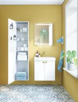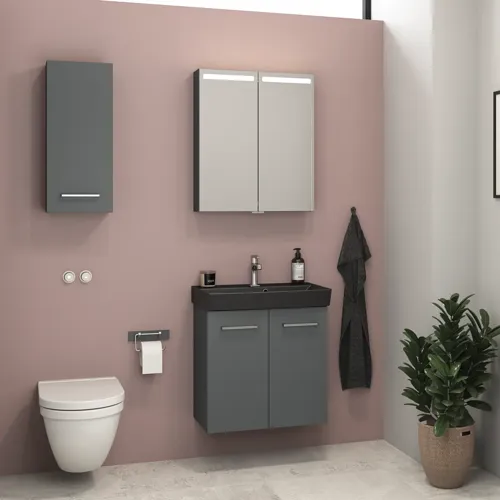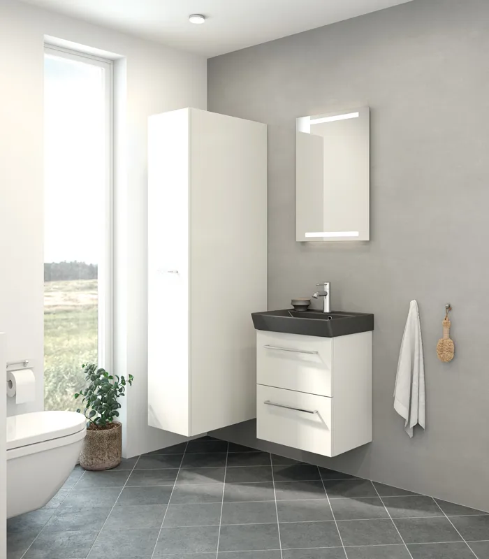 Sarja sopii täydellisesti pienempiin kylpyhuoneisiin. Tuotteiden avulla hyödynnät tilan ihanteellisesti silloinkin, kun neliömetrejä on rajallisesti.