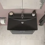 Saat laadukkaita materiaaleja ja älykkäitä ratkaisuja, joissa säilytystilaa on ihanteellisesti ja pesualtaat kapeita syvyyssuunnassa. Esimerkiksi Cappella-posliinialtaan muotoilu on upean ajaton, allasosa on suuri ja laskutilaa on paljon.